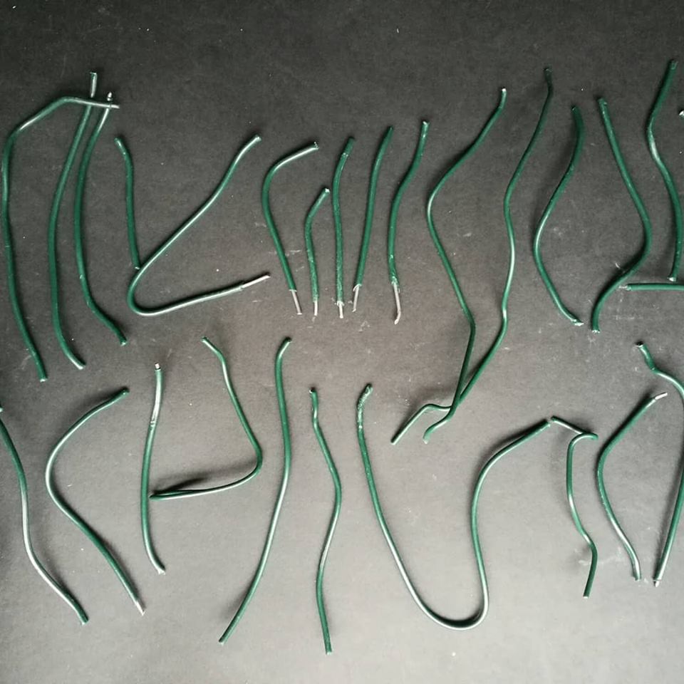 recent stone finds, destined for new work(s) or the continuation of a current project(?) together with snips of galvanised wire, coated in pvc – not a favourite material – I picked these up from the ground and could not seem to throw them away…