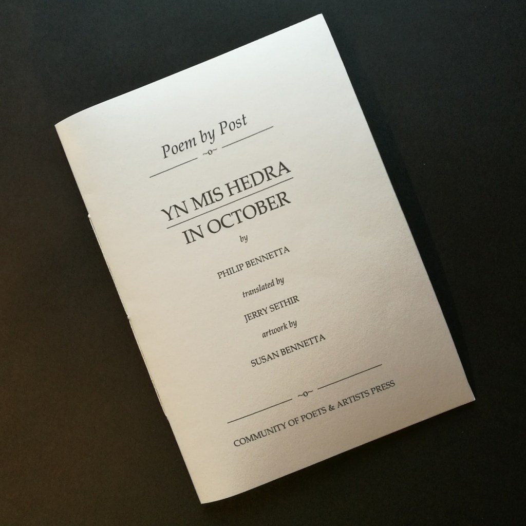 Following on from the poetry pamphlet Yn Mis Hedre/In October, here is a new short film to do with the art making process, which includes a reading of the poem in English and Cornish, together with music on bouzouki. I hope you like it. Thank you for viewing: