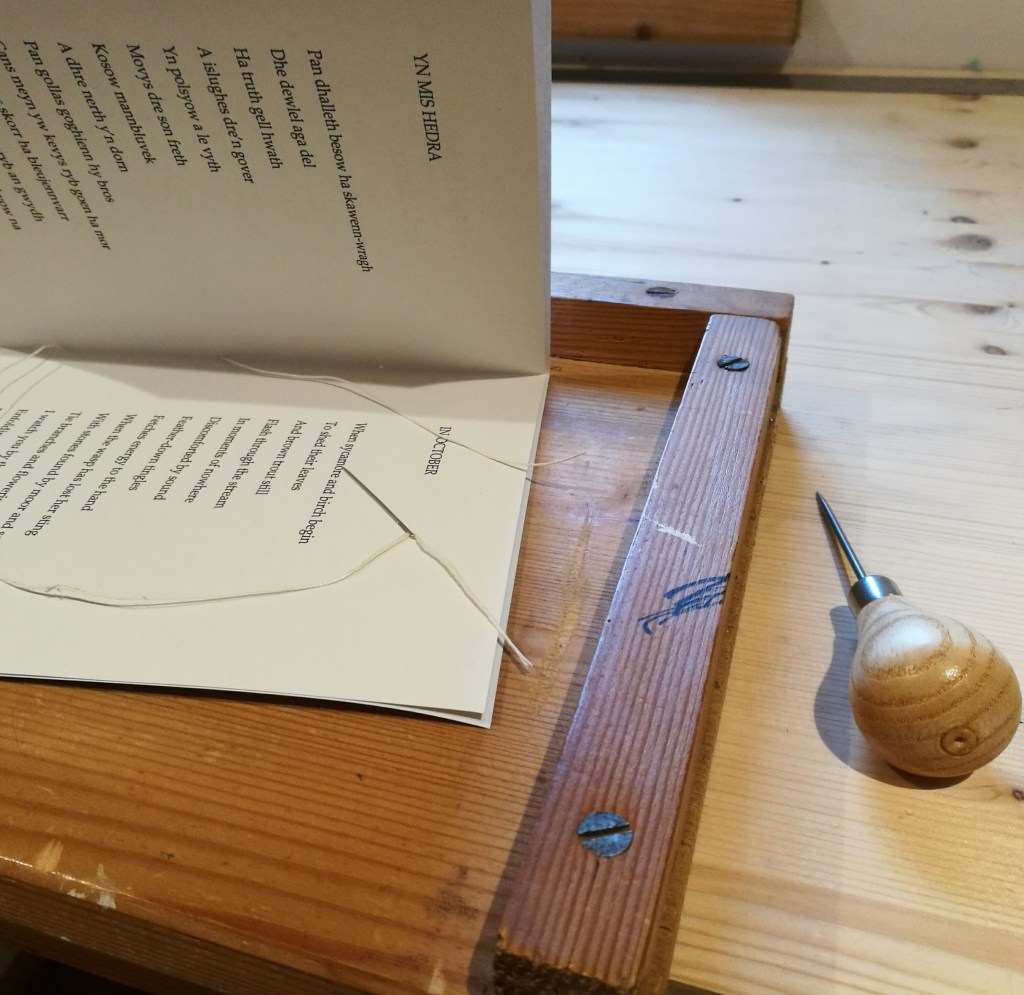 With Thanks to Jerry for translating the work into the Cornish language and to Susan for her sensitive pencil drawing. Here’s the final stitch…