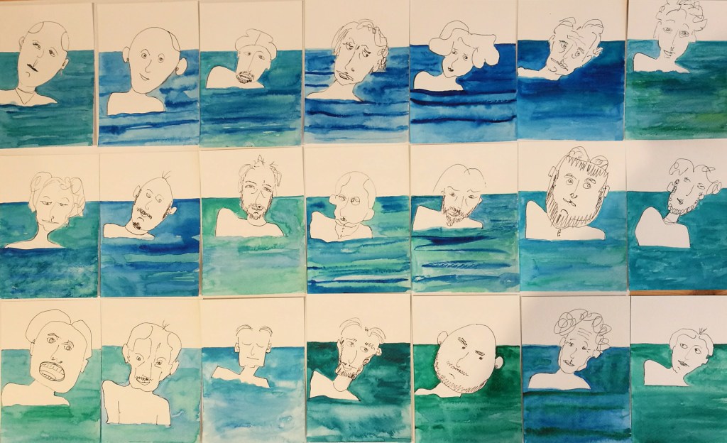 the latest project, featuring 21 ink and watercolour drawings on postcards…