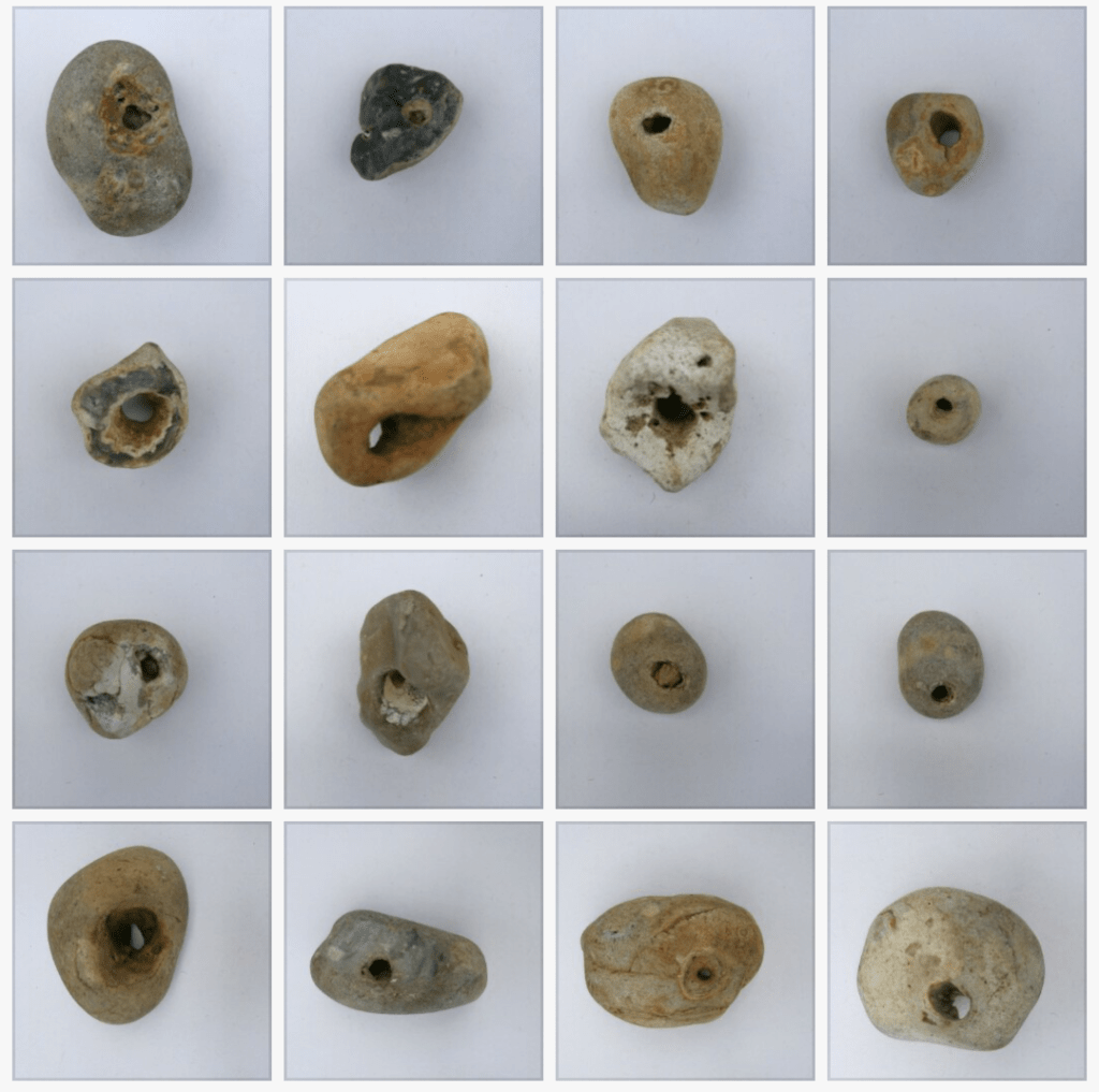 a selection of hag-stones found in our garden, Walmer, Kent, digital photograph, Philip R. Bennetta, 2023