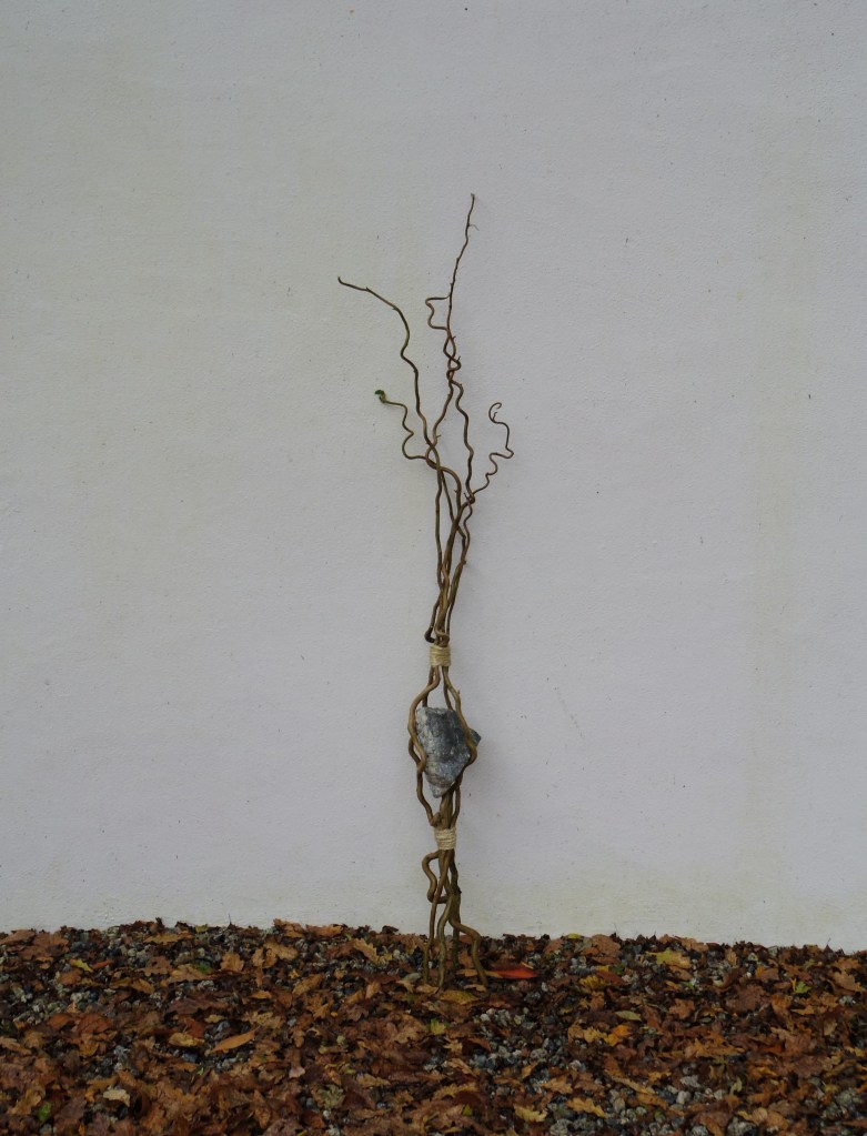 My most recent “killick” sculpture, stone from Hannafore by Looe and Corkscrew Willow cuttings from near the studio.