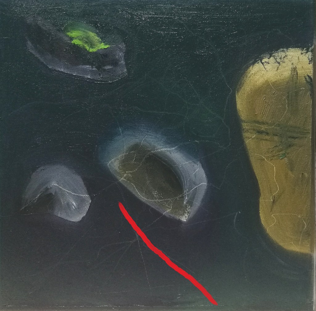 Killick (wood & stone) – the tenth sculpture in this project, made from oak trimmings found by the studio and a stone that found me…